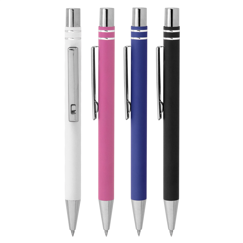 Bolígrafo retráctil. Tinta gel. Cuerpo metálico en diferentes colores acabado mate. Clip metálico, puntera y pulsador metálicos.