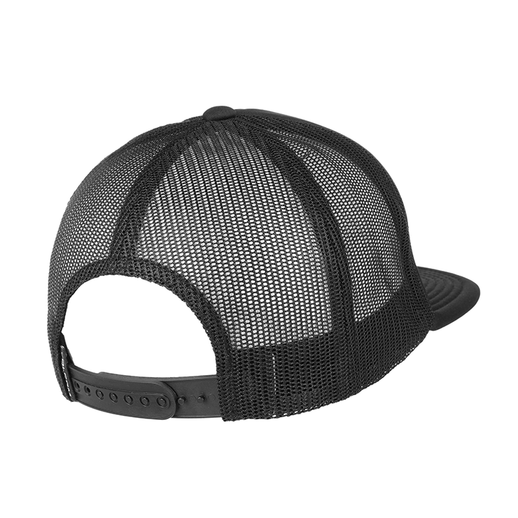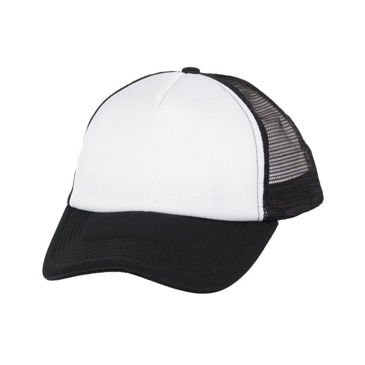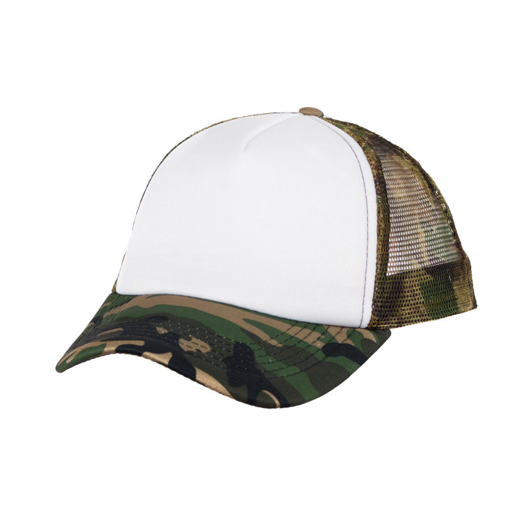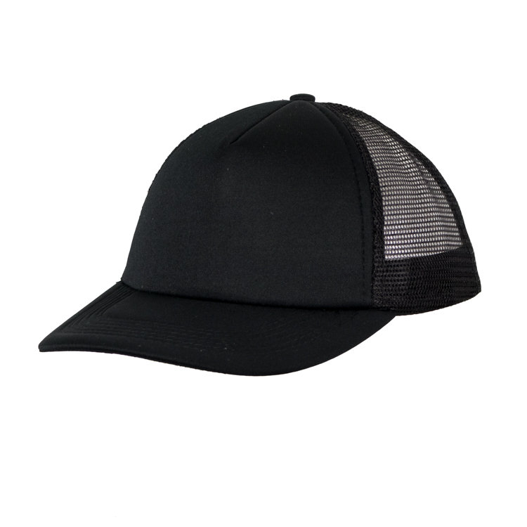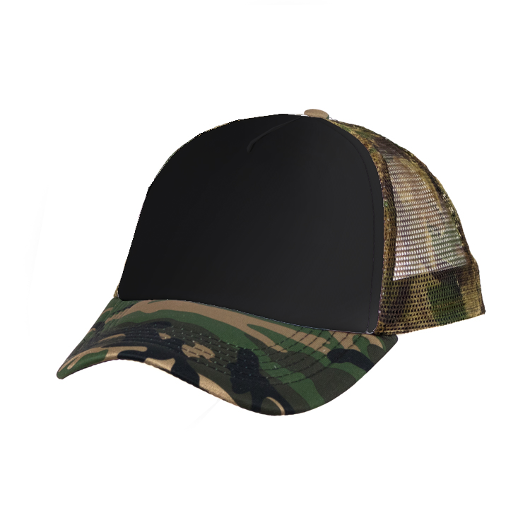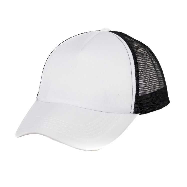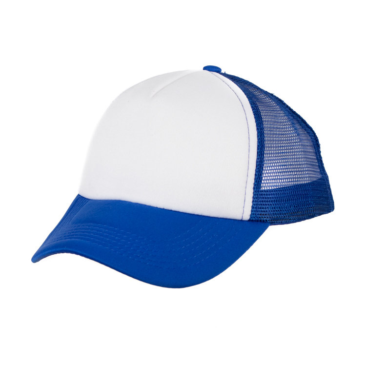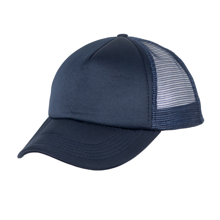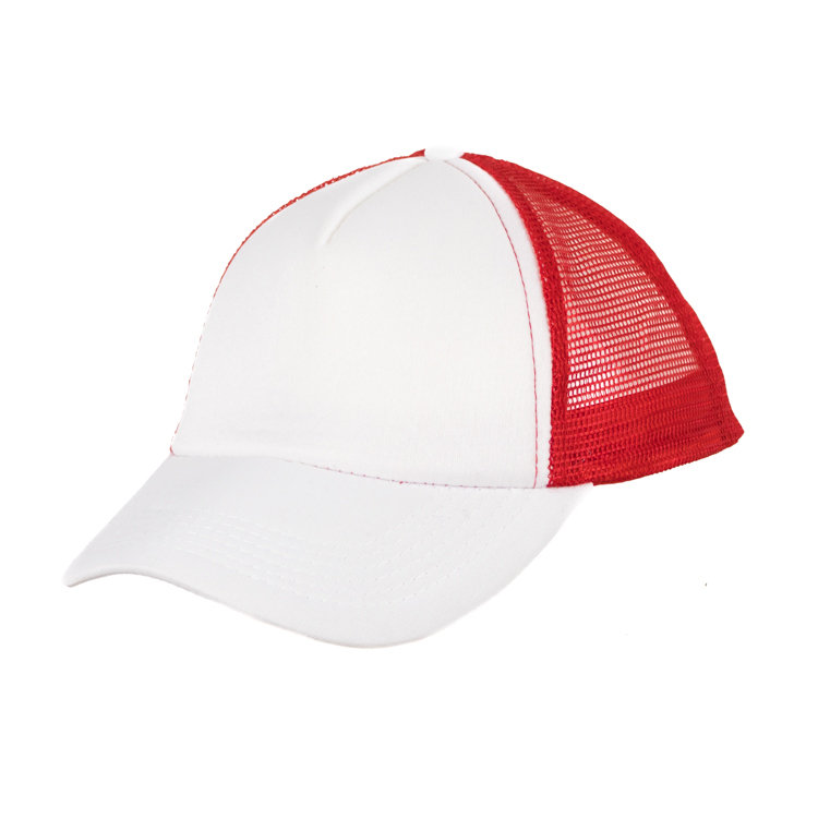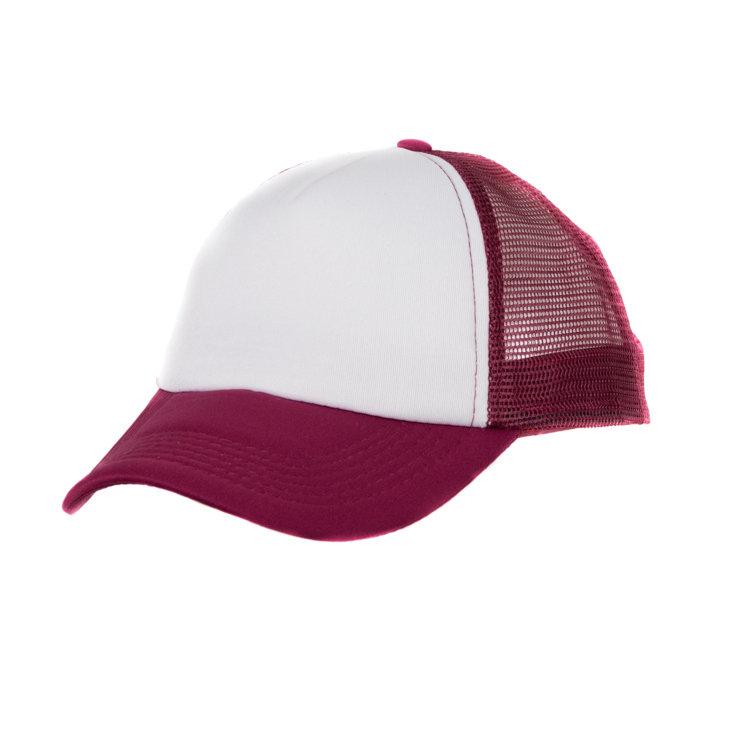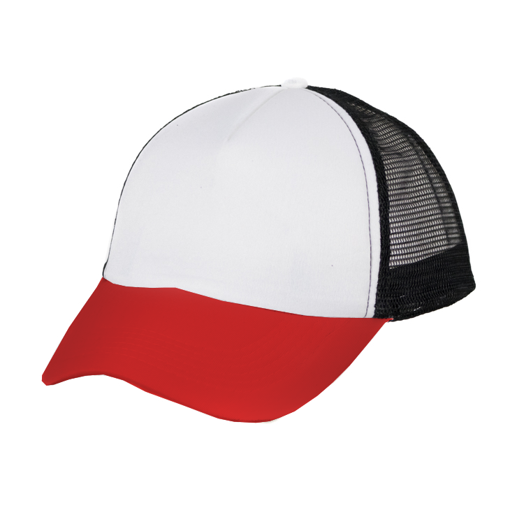 Gorro con red de polipropileno, 5 gajos de poliéster 100% con 6 ojalillos bordados y botón forrado al tono. En combinación de tonos. Medida única, regulable con tira plastica.