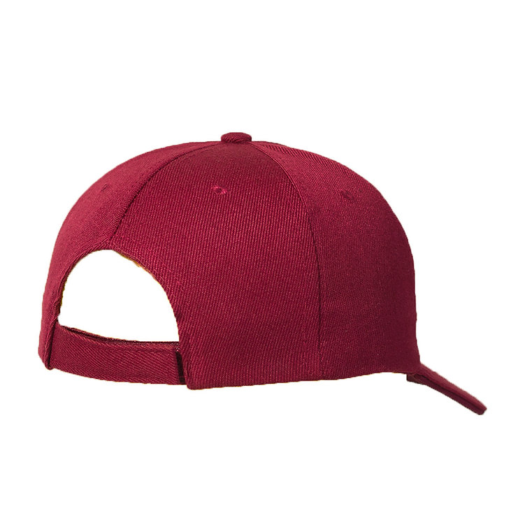 Gorro de gabardina, 6 gajos 100% acrilico con 6 ojalillos bordados y botón forrado al tono. Medida única, regulable con traba metálica.