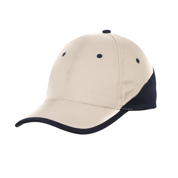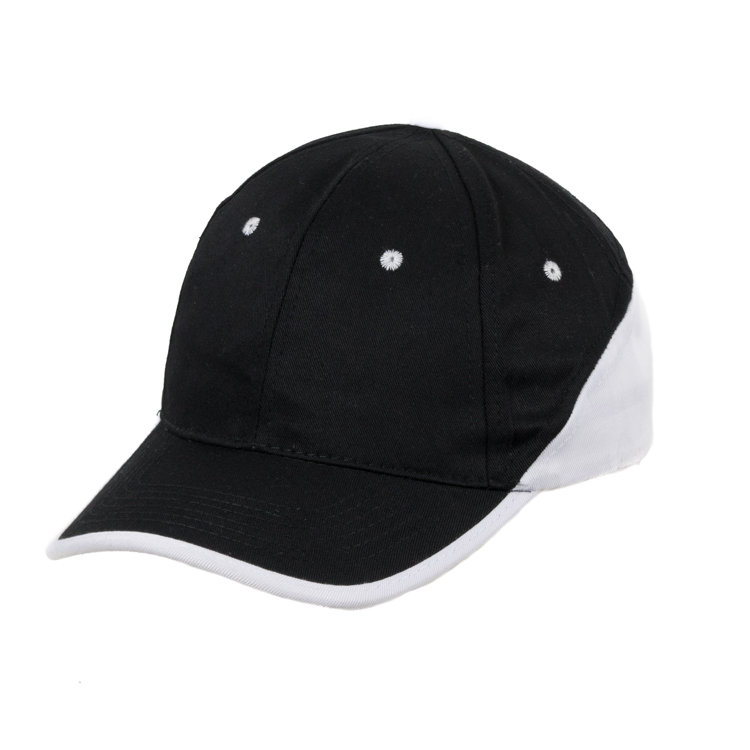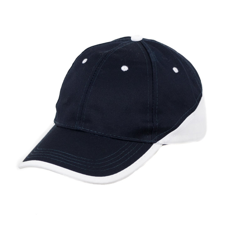 Gorro de gabardina, de algodón y poliéster combinado con corte diagonal con 6 ojalillos bordados y botón forrado al contratono. Visera envivada al contratono. Medida única, regulable con tira de velcro.