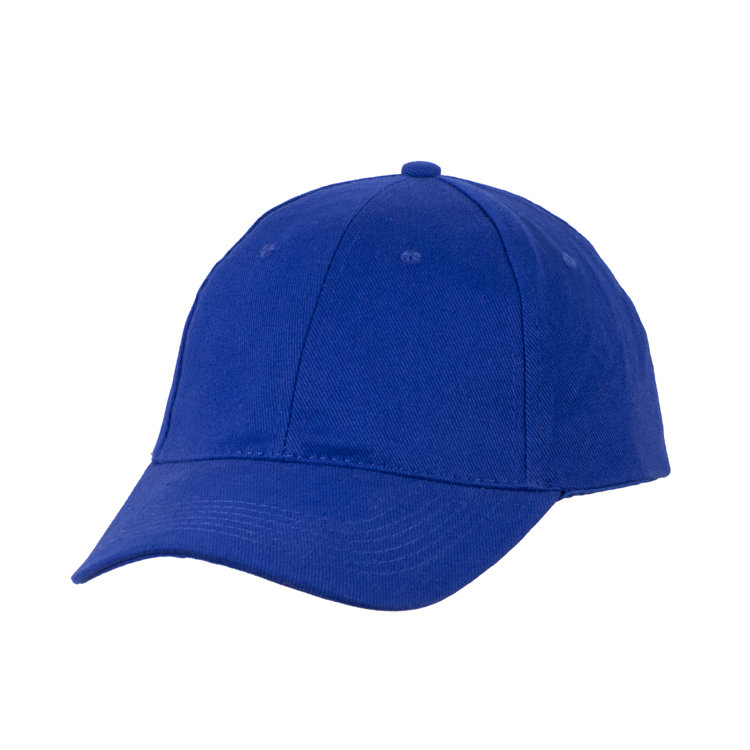 Gorro de gabardina esmerilada, 6 gajos de algodón y poliéster con 6 ojalillos bordados y botón forrado al tono. Medida única, regulable con traba metálica.