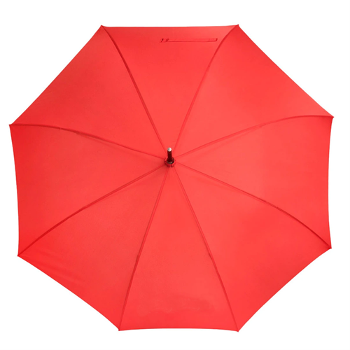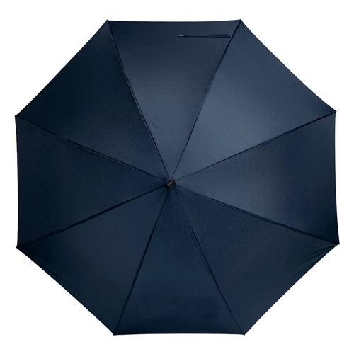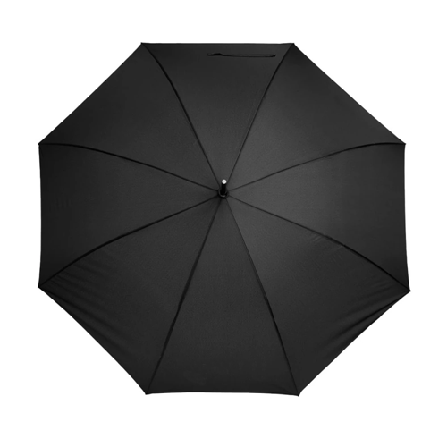 Ø 120 cm. 8 gajos. Ancho gajo 45 cm. Largo total 93 cm. Poliéster pongee, metal y EVA. Paraguas APERTURA AUTOMÁTICA Y CIERRE MANUAL. Eje metálico, varillas en fibra de vidrio , punta niquelada, mango en EVA. Botón a presión. Cierre con correa de velcro.