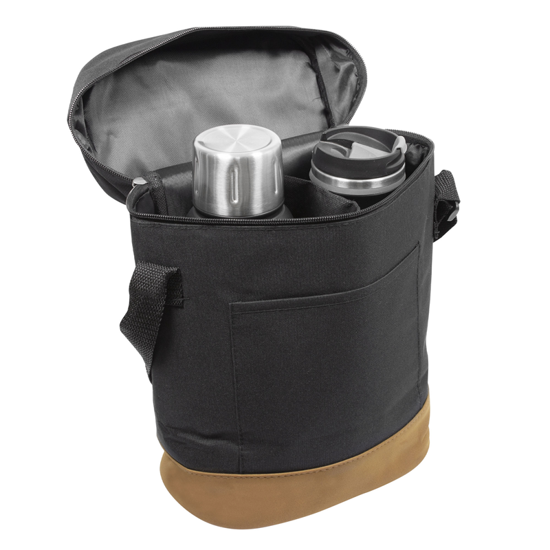 23 x 33 x 14 cm. Capacidad 10 litros. Poliéster. Bolso Picnic con detalle cuero PU. Un bolsillo externo. Interior acolchado con división para poner un termo y los accesorios que desees para un día ideal. Correa regulable. Un aliado práctico para tus fines de semana.